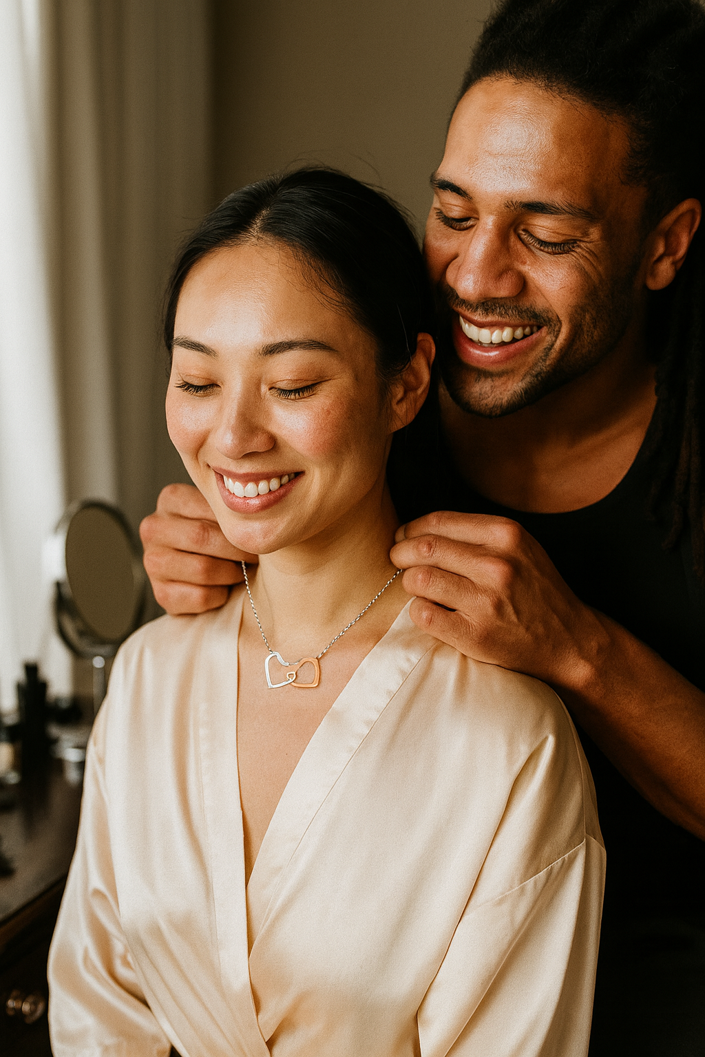 Celebrate your bond with a gift that speaks louder than words. The Interlocking Hearts necklace features two elegantly entwined hearts, each adorned with sparkling cubic zirconia to capture the light—and the heart. Whether it’s an anniversary, a birthday, or just because, this timeless piece is a daily reminder of love that never fades.